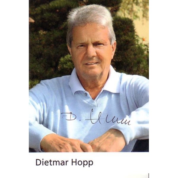 Original signierte Autogrammkarte von Dietmar Hopp. Dietmar Hopp (* 26. April 1940 in Heidelberg) ist ein deutscher Unternehmer und Mitbegründer der SAP AG. Hopp gilt als einer der reichsten Deutschen und wird in der Liste der reichsten Menschen der Welt des Forbes-Magazins geführt. Sein Vermögen wird auf mehr als 4 Milliarden Euro geschätzt.